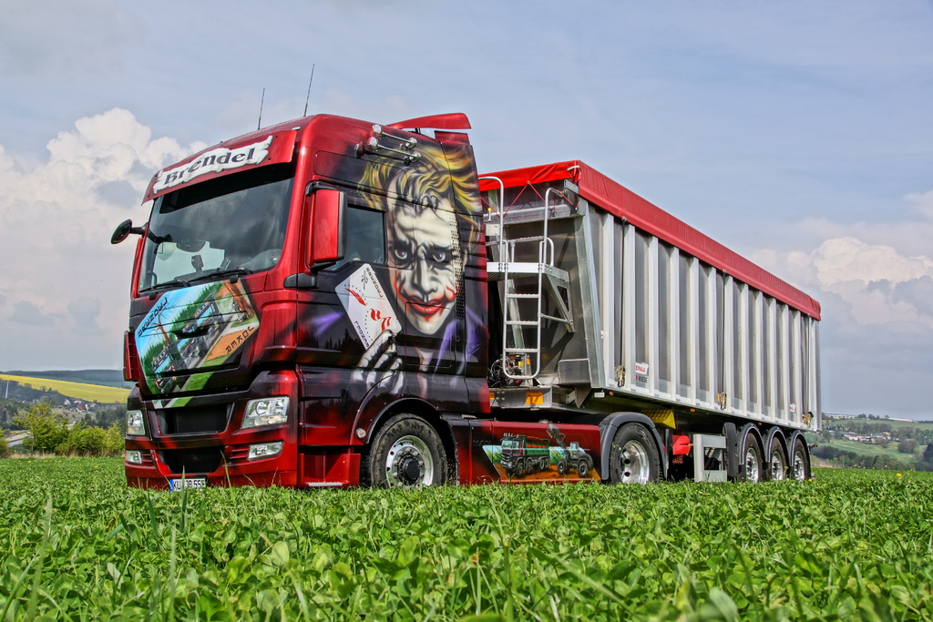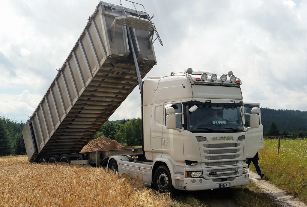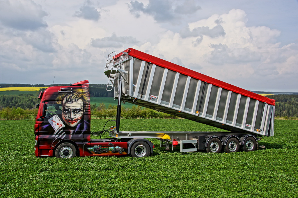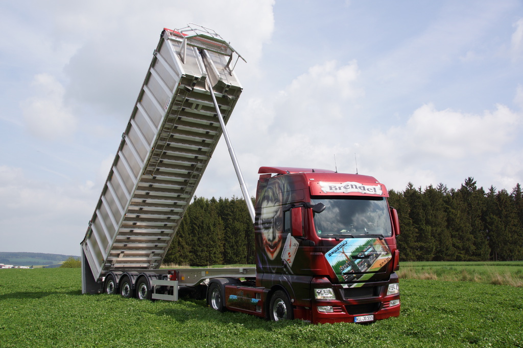 Transporte werden mit unseren MAN mit Hydrodrive und einem 50 cbm Benalu-Alu-Kipper erledigt.